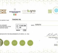 Tutto il legname utilizzato è conforme alle direttive ISPM N.15 - FAO FITOK completo di dichiarazione